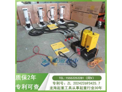 (4)高精度同步爪式千斤顶起升下降由电脑控制,通过液晶显示屏精准调控行程,同步误差≤1mm,顶升行程大,可达二三十公分,一次就可以起升到预定高度,无需多次操作,可定制数量、油管长度、驱动方式、行程、爪部长度等