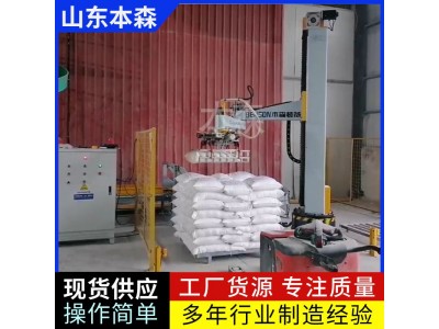 融雪剂码垛全自动立柱堆码机是一种专为袋装或桶装融雪剂设计的自动化设备,集机械、电子、传感器及人工智能技术于一体,通过立柱式机械臂与专用抓具的协同作业,实现物料的精准抓取、搬运与堆叠。其核心结构包括立柱、升降机构、货叉或爪指式抓具、伺服驱动系统及智能控制系统,具备高度集成化与空间适应性,可替代人工完成高强度、重复性的码垛任务。